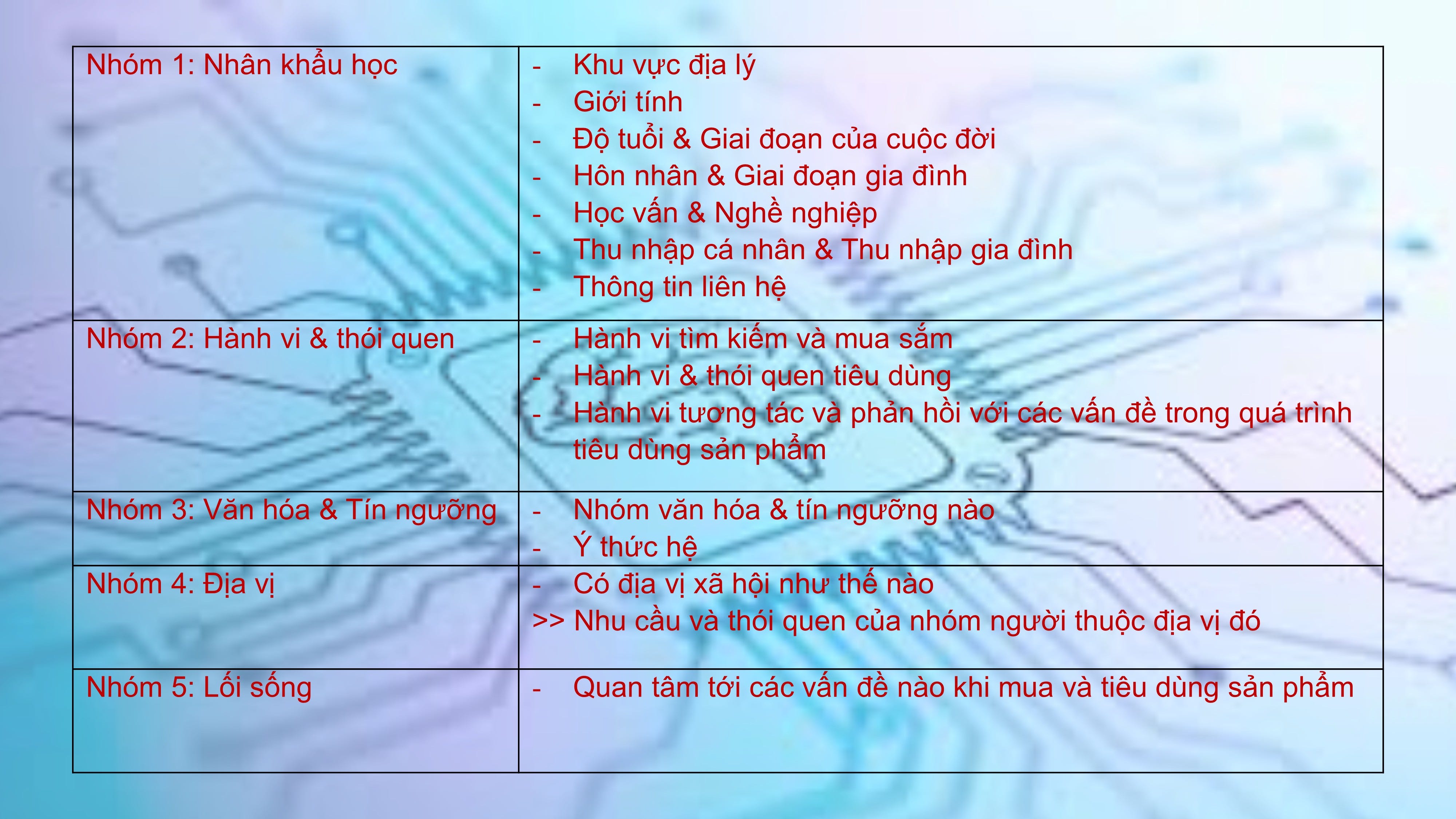 Với từng nhóm yếu tố và các tiêu chí như vậy, doanh nghiệp cần dựa trên mong muốn xây dựng mối quan hệ với khách hàng như thế nào để đào sâu vào các tiêu chí hơn nhằm xác định được chính xác, chi tiết trường thông tin cần thu thập từ khách hàng/người tiêu dùng.