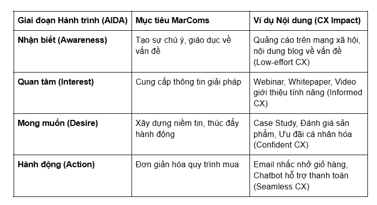 Bằng cách tối ưu hóa thông điệp theo hành trình, MarComs đã loại bỏ những “điểm đau” (pain points) như thiếu thông tin, quá nhiều lựa chọn, hoặc quy trình rắc rối, từ đó trực tiếp cải thiện CX.